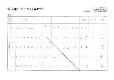 24日に宮崎市北部記念体育館でおこなわれた2022年夏期ジュニアリーグ卓球大会の結果は以下のとおりです。(画像をクリックすると大きくなります)。写真(ここをクリック)もアップします。